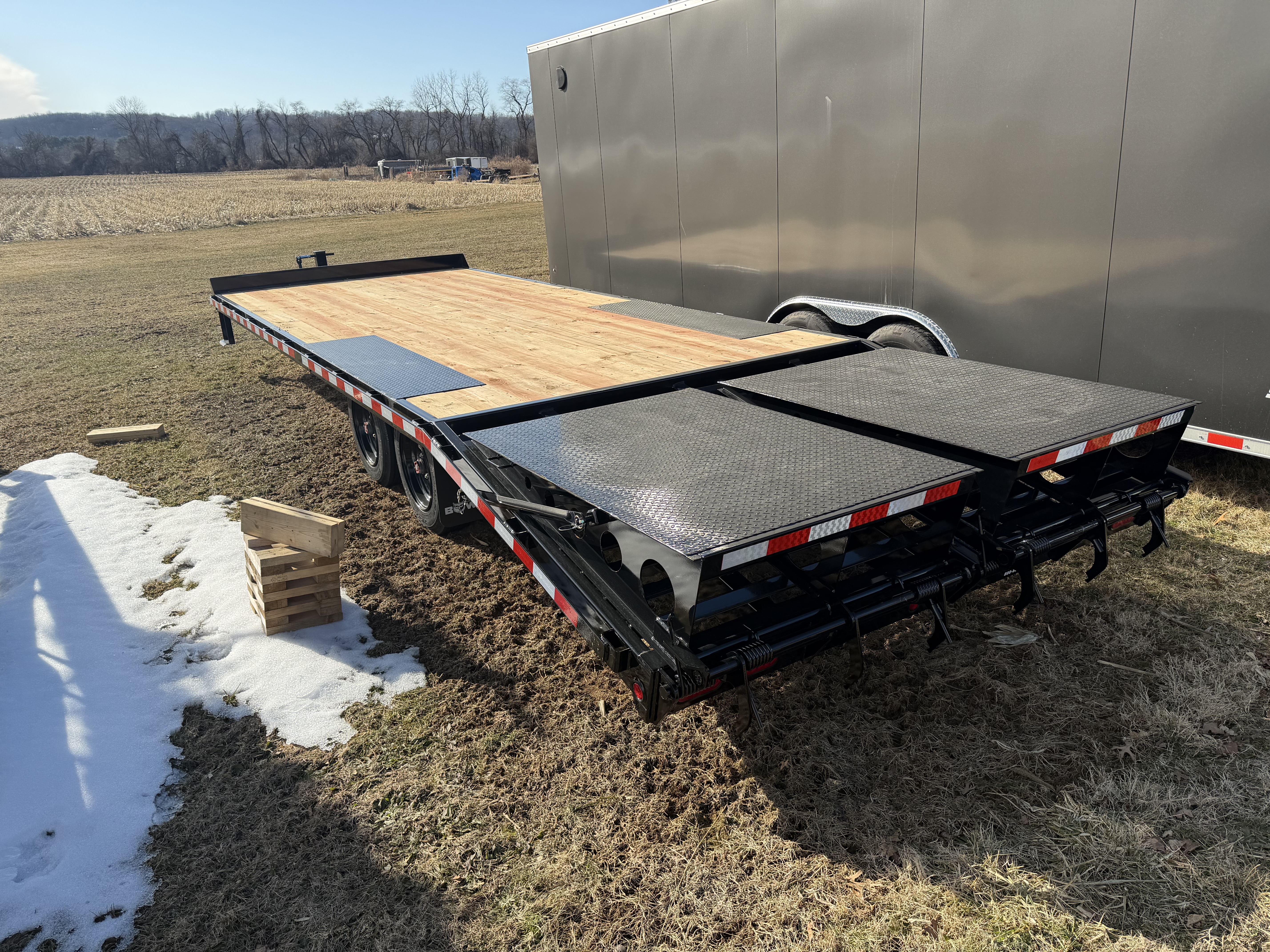 Wedge Ramps provide added stability and support, so moving heavier equipment and cargo on and off your trailer becomes more accessible and safer. When the ramps are stowed on the deck, they sit flush, converting your dovetail into additional usable deck space.